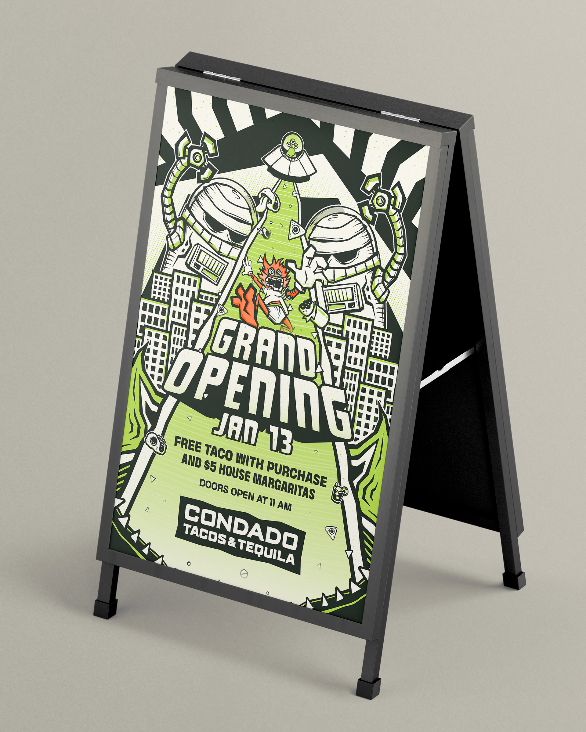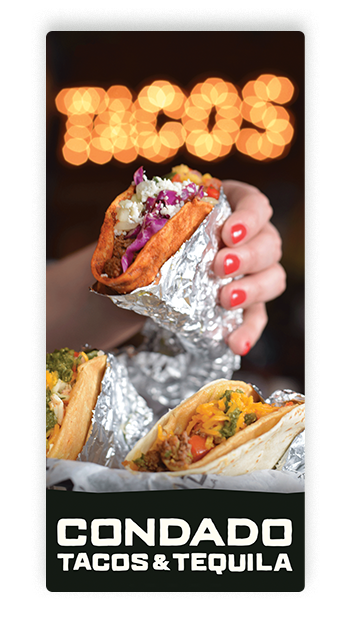 I’ve introduced animation design to Condado Tacos. Bringing energy and personality to a brand that was born to dabble in strange ways. Motion design promotes guest engagement and improves impressions on our social media channels as well as email open rates.