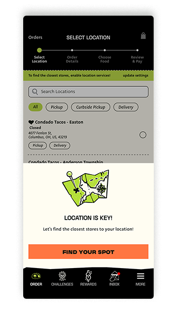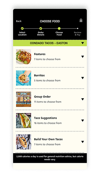 I lead the design and UX/UI direction of Condado Tacos App refresh. That included illustrating assets for various portions of the app, working with developers on establish rules for brand visuals and typography.